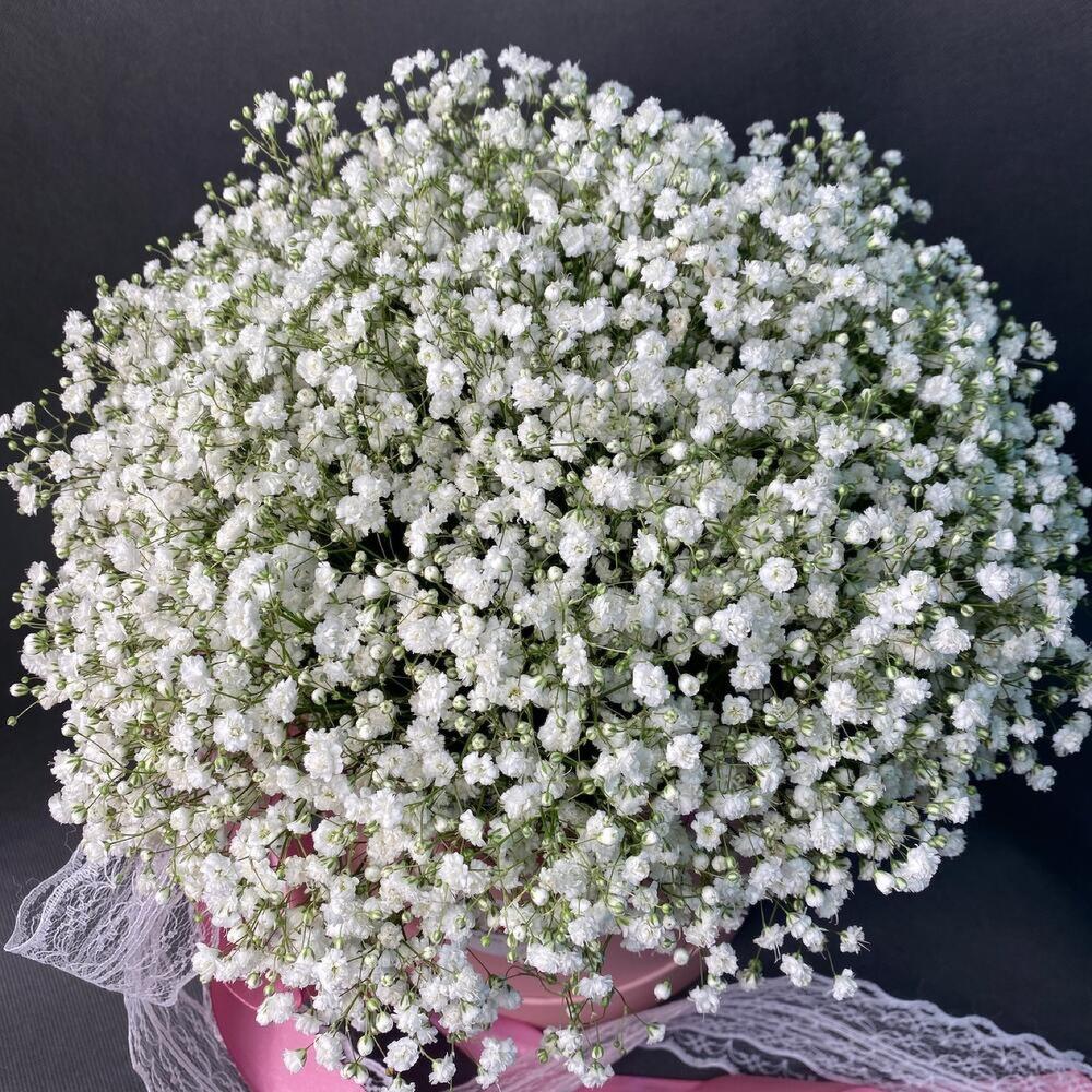 Гипсофила – 5 шт.Коробка шляпная – 1 шт.Кружево натуральное – 1 шт.