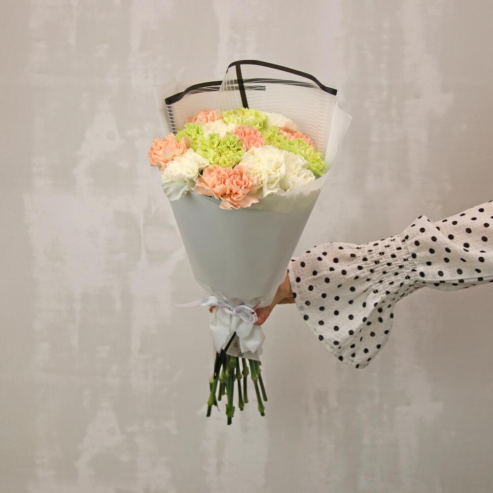 Букет из 15 диантусов (гвоздик) микс в стильной упаковке