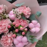 Букет из гвоздики, хлопка и гиперикума