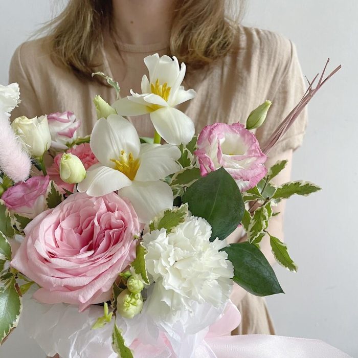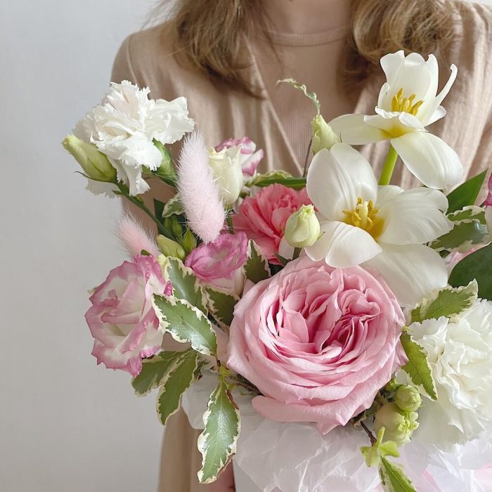 Категорий: Гвоздики, Лизиантусы, Пионовидные розы, Розы, Сухоцвет, Тюльпаны