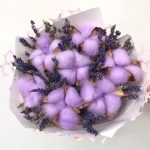 «Лавандовое созвездие» Букет из розы, гвоздики, статица и хлопка