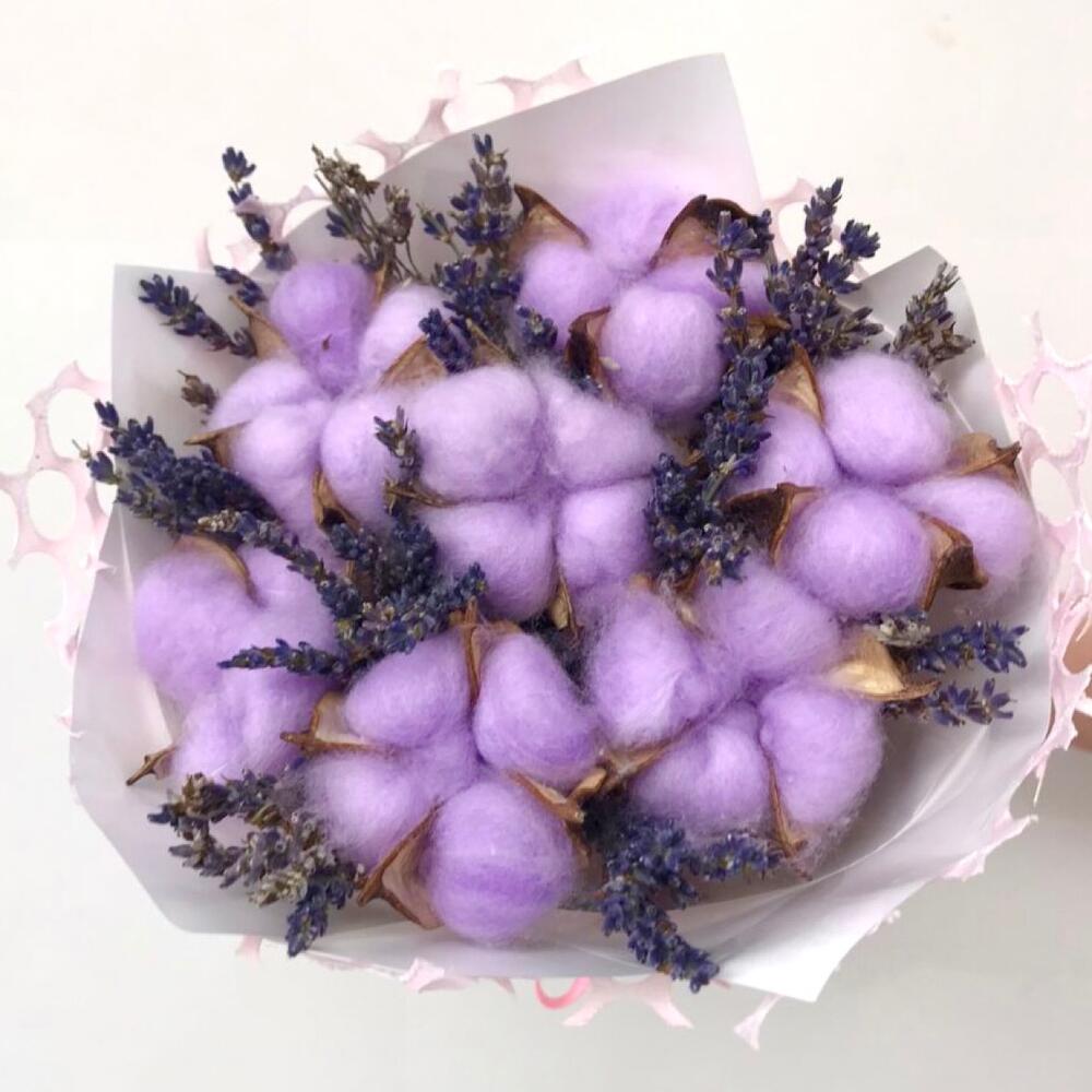 Хлопок – 7 шт.лента фирменная – 1 шт.бумага дизайнерская – 2 шт.лаванда пачка – 1 шт.