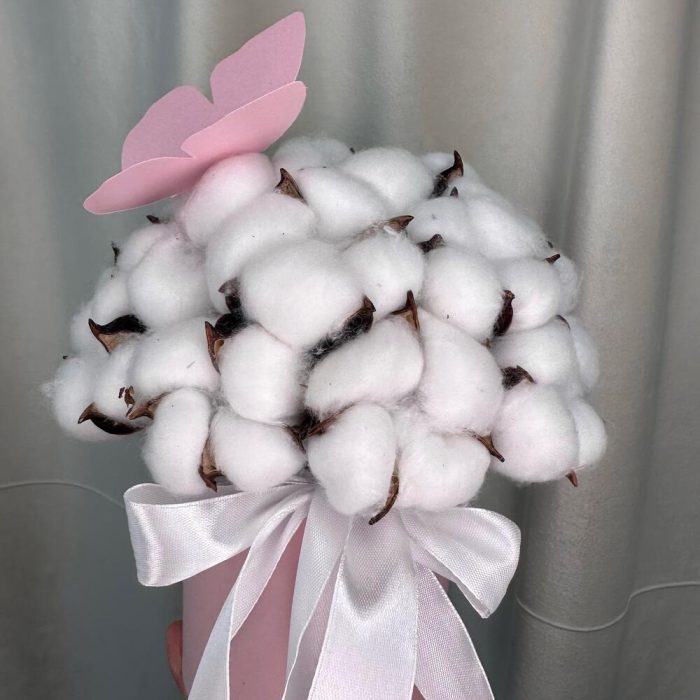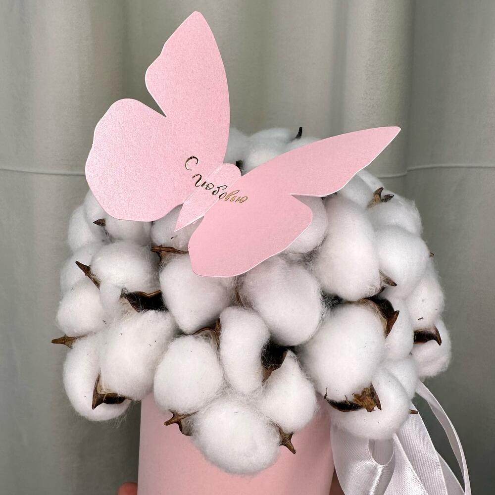 Композиция из натурального хлопка в шляпной коробке